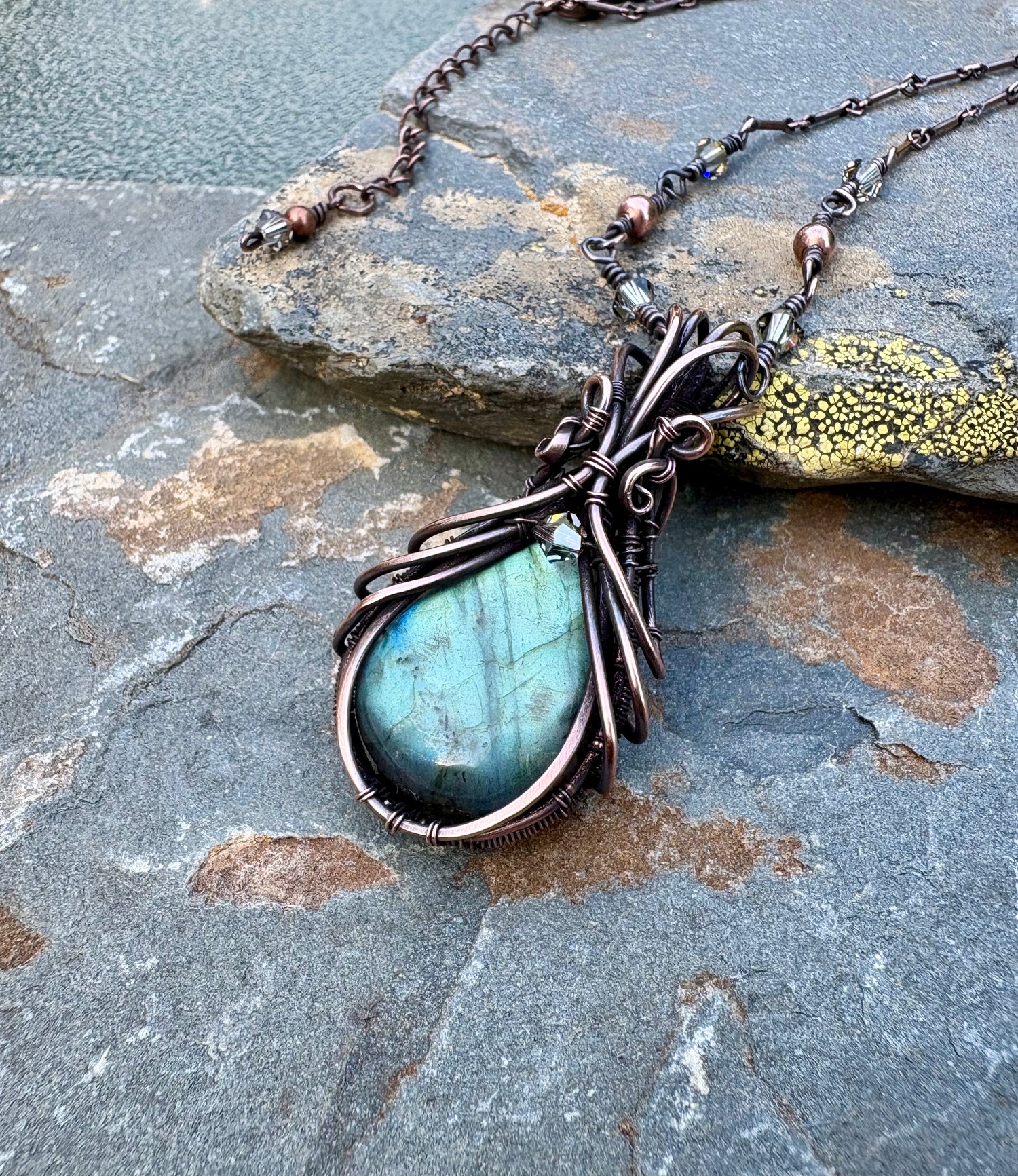 Labradorite Necklace - Handcrafted Copper Wire Wrapped Pendant